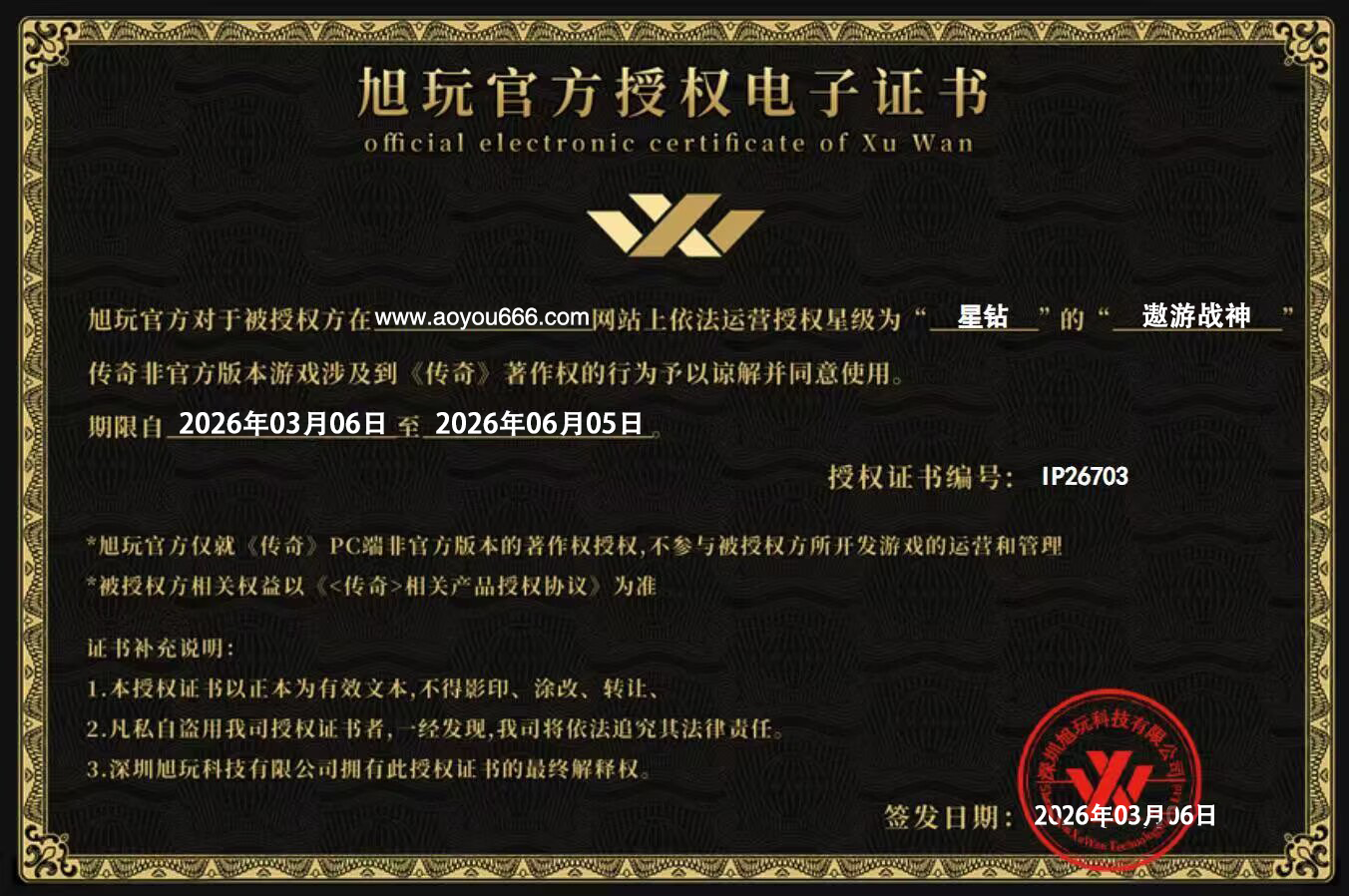 遨游战神-双授权资质公示-旭玩集团+安徽传麒智达正规双授权